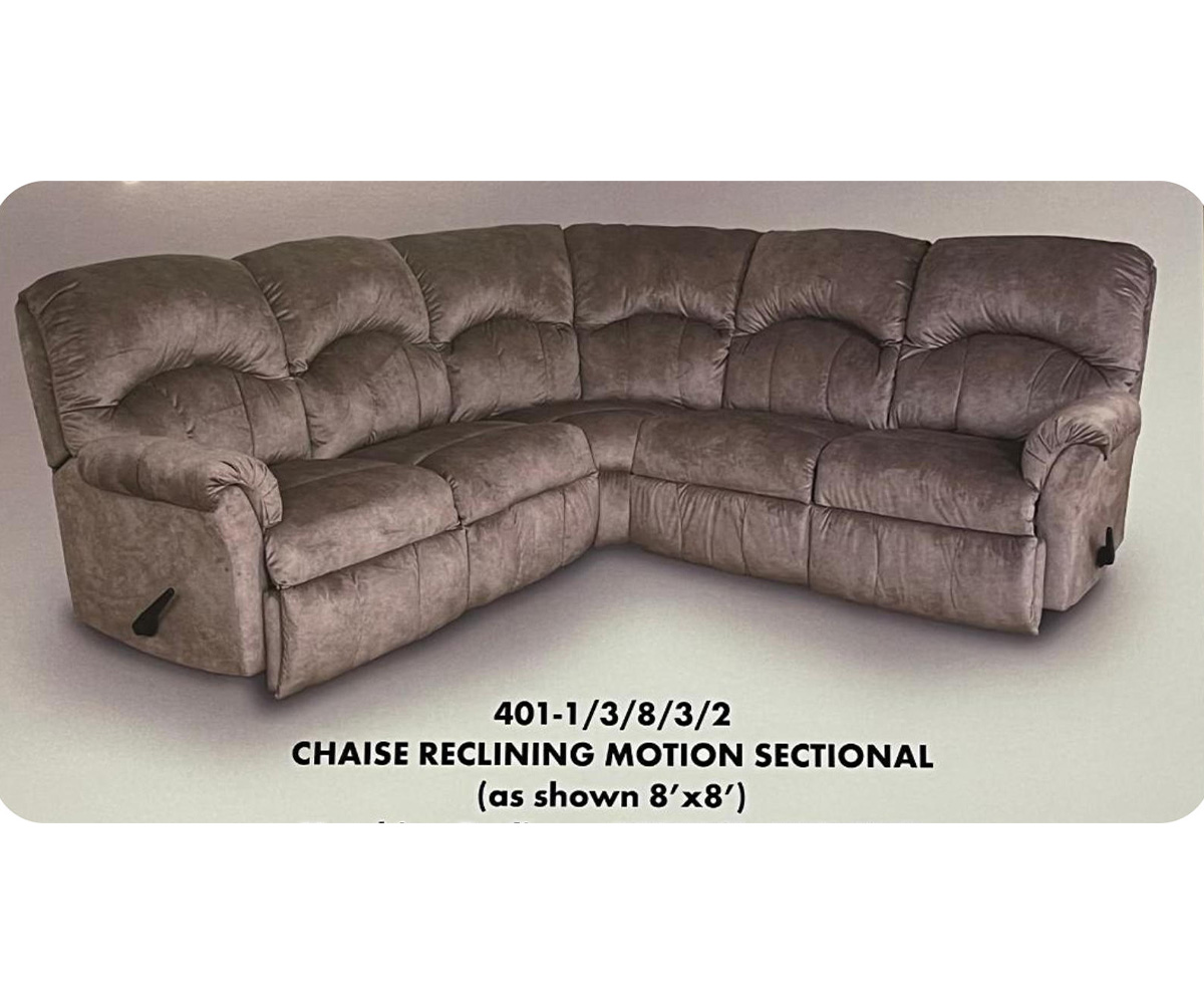 Options: 401-1 LAF Recliner 401-2 RAF Recliner 401-3 Armless Chair 401-8 Corner Wedge