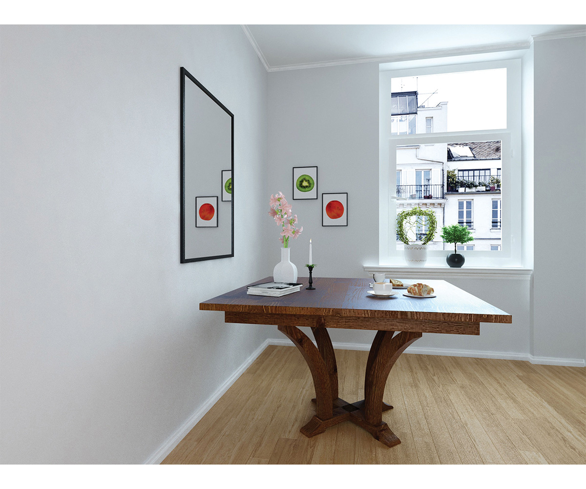 Common sizes available with seating options: • 42″ Square: Solid Top, Seats 4 • 42″ Square: One Leaf, Seats 6
