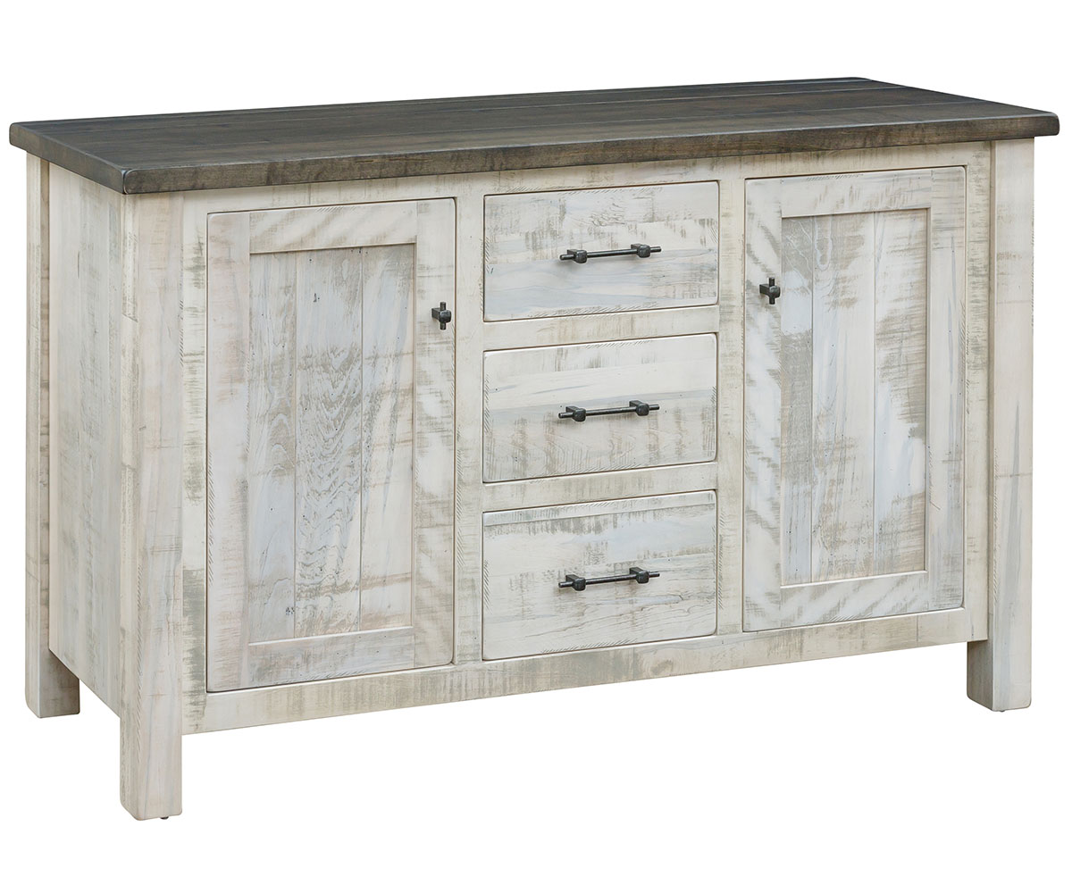 Shown With: Wood: Rough Sawn Wormy Maple Stain – Top/Seat: Aged Amazing Walnut Paint – Frame: Aged Whitewash