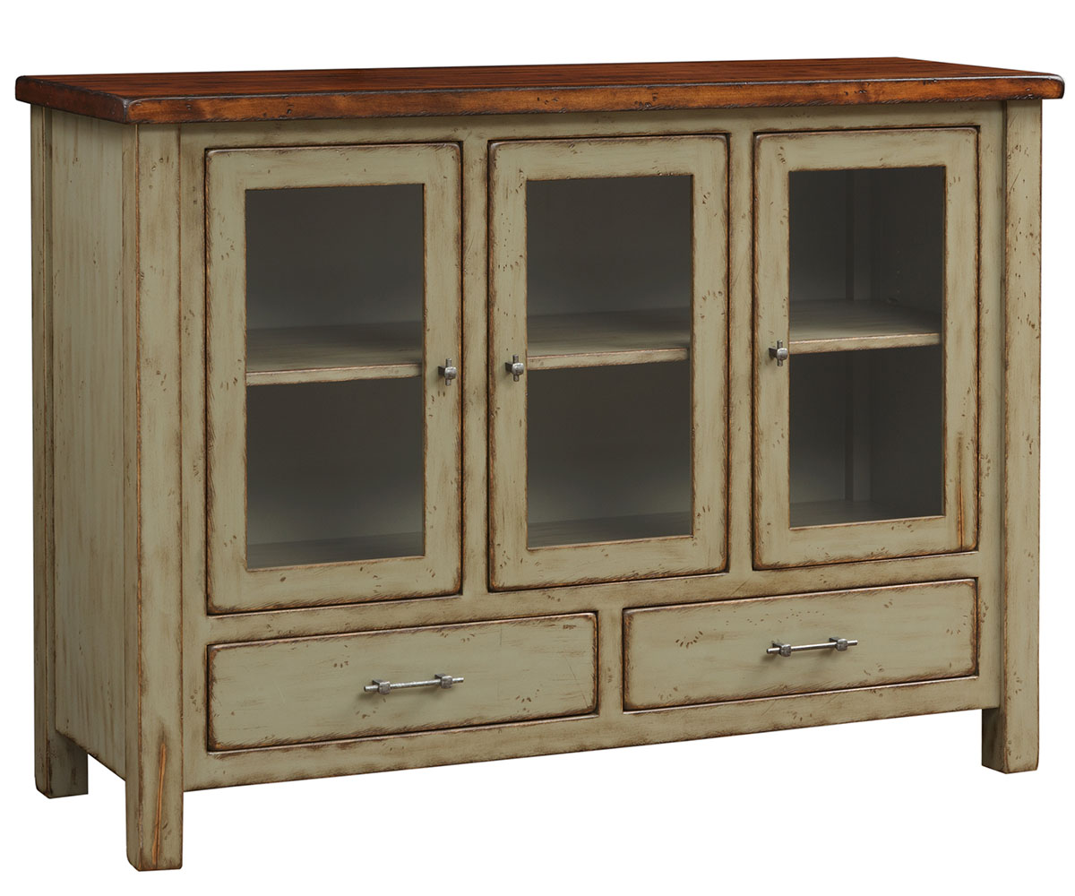 Shown With: Wood: Brown Maple Stain – Top: Antique Harvest Paint – Frame: Antique Green Frost Hardware: K58-SI (knob) K558-SI (pull)