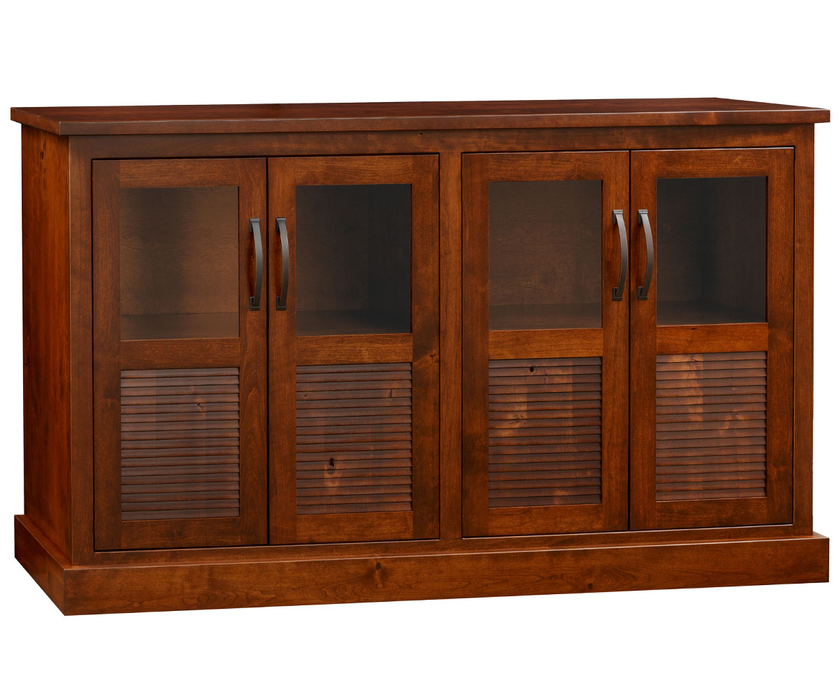Features: • Louvered detail on each door • One adjustable shelf behind each set of doors