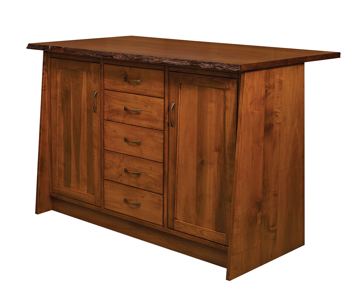 Features: • 1½” thick top with a live edge • Dovetailed drawers • Full extension soft-close under-mount drawer slides • Adjustable wood shelves in the base