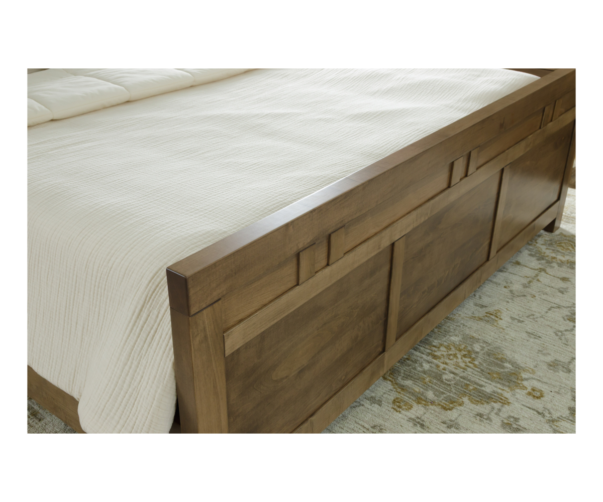 Made by True WoodDimensions: King Size: 75¼”W x 85″L Headboard: 66″H Shown With: Wood: Brown Maple Stain: Sandstone Options: • Storage drawer rails Item Code: 126-K This design is also available in the…