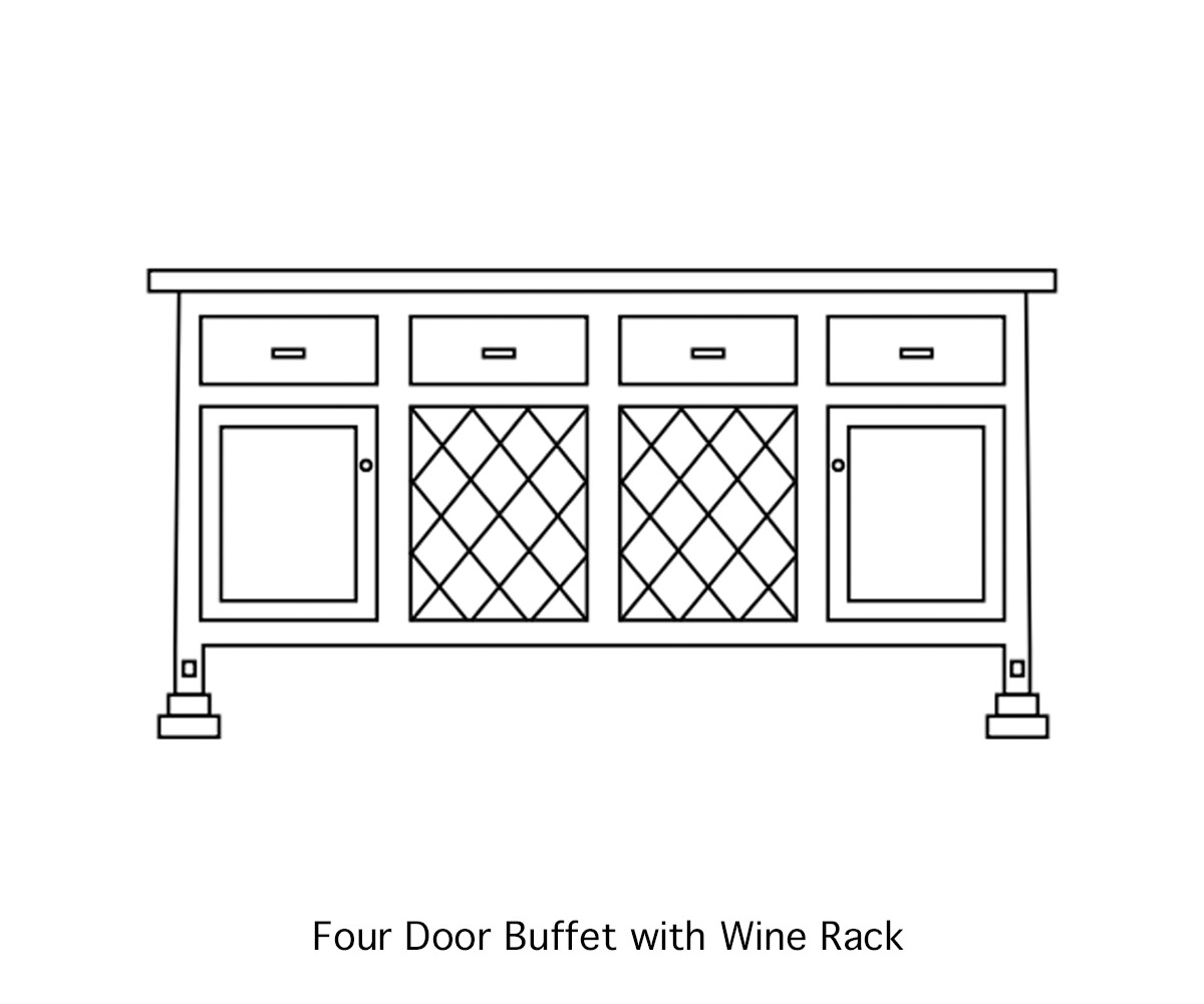 Also available in the following sizes: HTS5210-D2: Two Door Buffet – 43”W x 20”D x 36”H HTS5210-D4: Four Door Buffet – 78”W x 20”D x 36”H