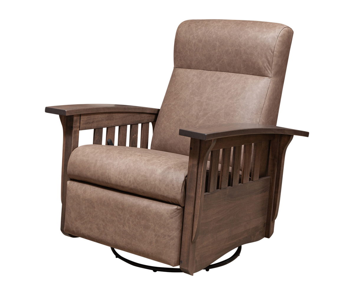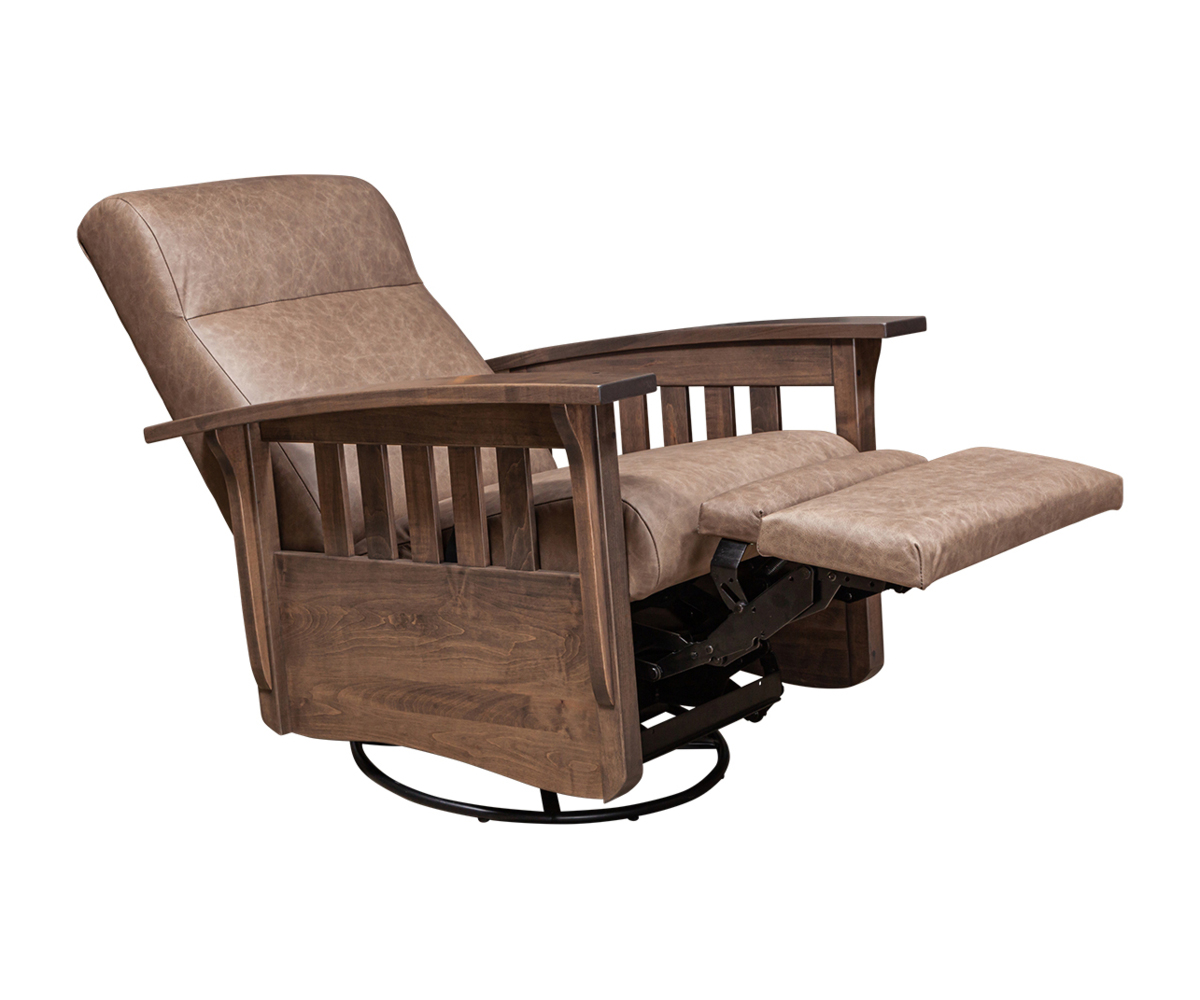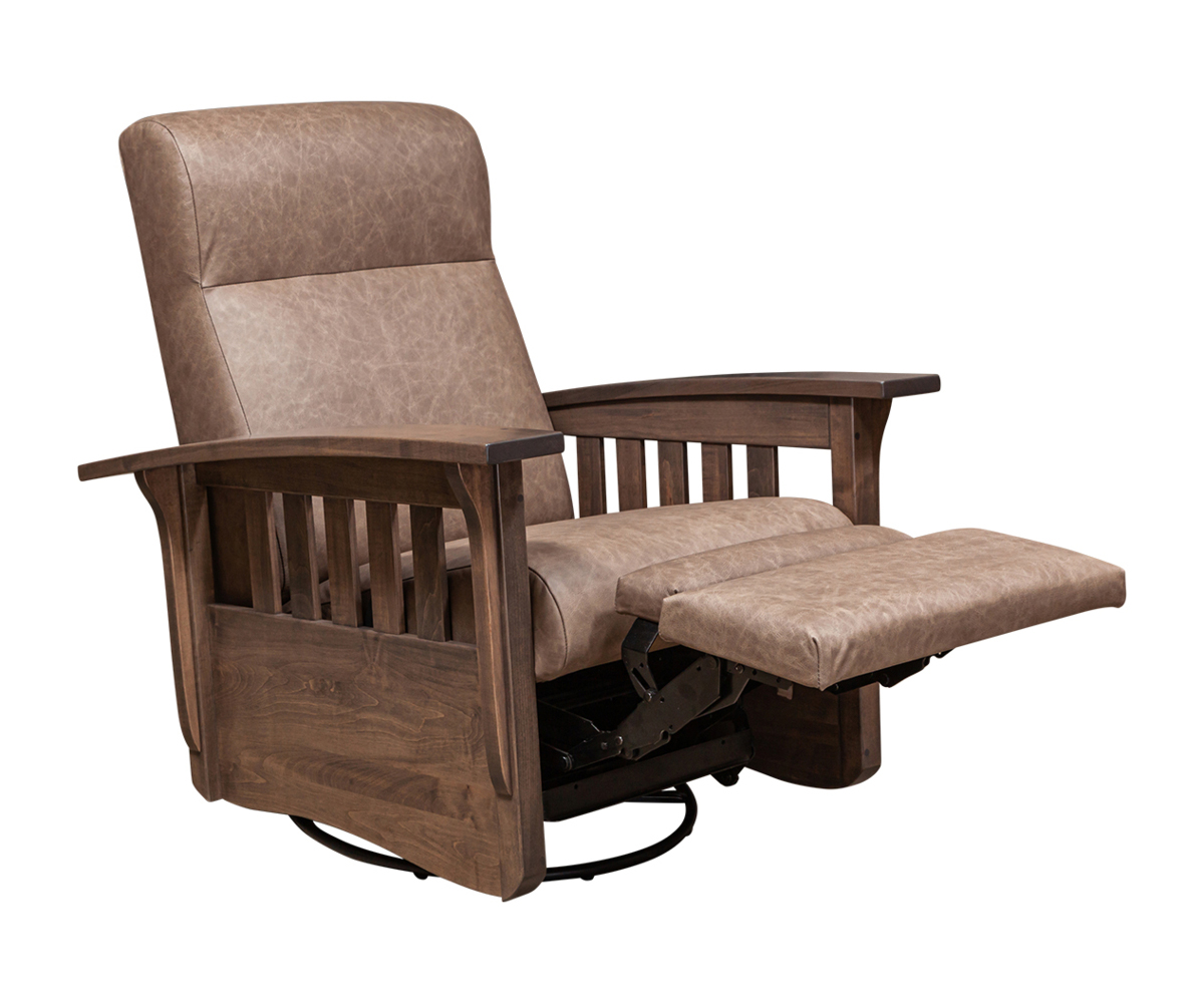 Features: • Sinous spring seat construction • 2.5 high density seat foam • Chair swivels for easy access • Manual recliner • Solid wood frame