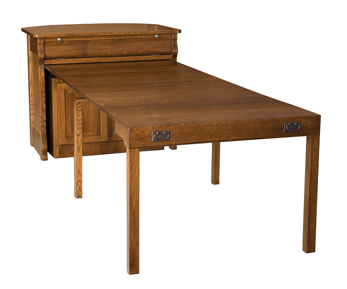• Top tilt out opening stores the table leaves