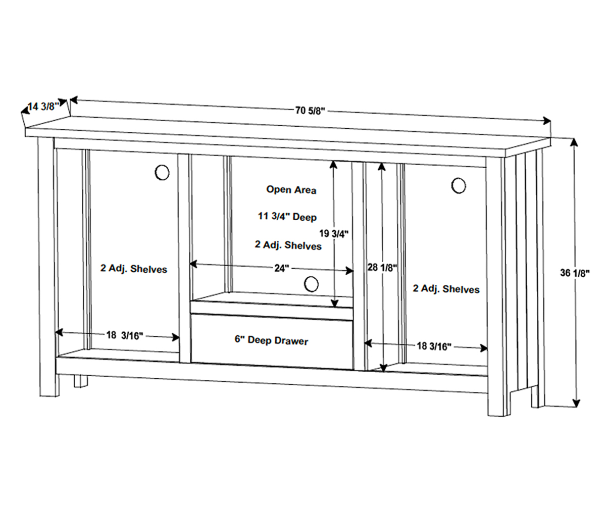 Dimensions: 70⅝”W x 14⅜”D x 36¼”H