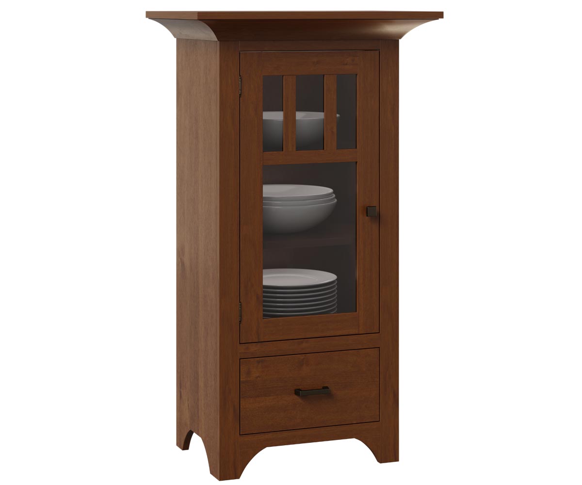 Options: • Glass shelves • One light in the top • Glass sides • Mirror back in place of the panel back