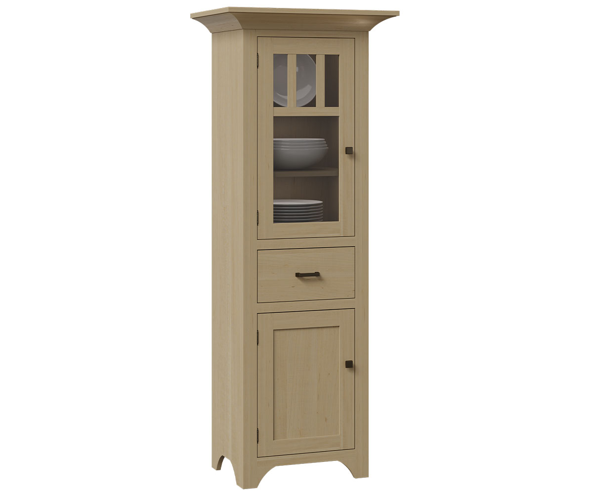 Features: • 3 adjustable wood shelves • Solid sides • Clear glass in the door • Dovetailed drawer
