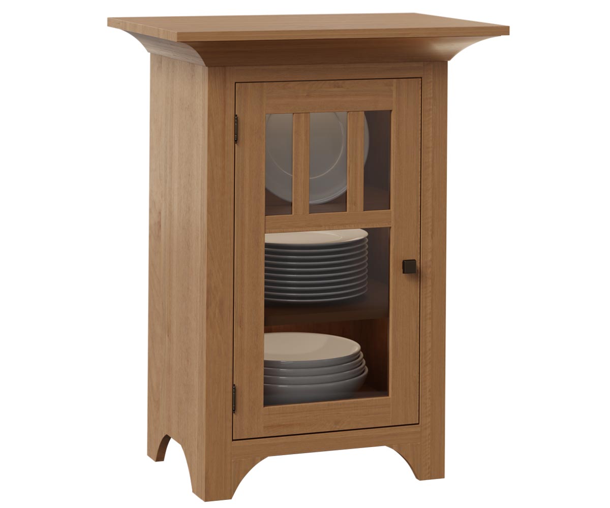 Options: • Glass shelves • One light in the top • Glass sides • Mirror back in place of the panel back