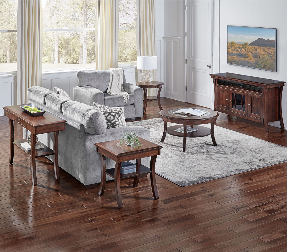 Pronounced bowed legs gracefully ground each Sierra piece and flow upward to solid hardwood tops with chamfered edges. This versatile style blends well with any décor, yet stands out with its beautifully artistic elegance.