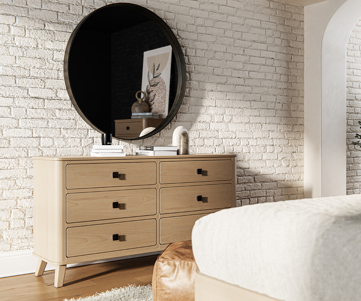 Dimensions: Dresser: 50″W x 18½”D x 39″H Mirror: 24¾”W x 27″H
